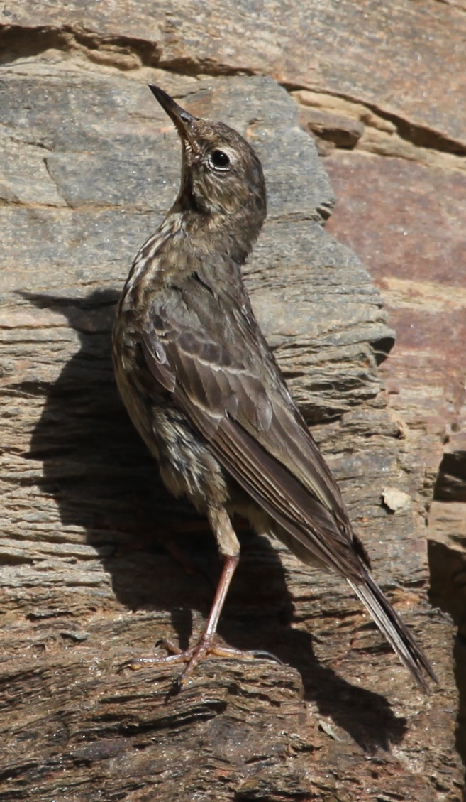 There was another Pectoral Sandpiper on Meikle Loch today, along with a good selection of other waders, including 6 Ruff. There was also at least 4 Ruff in the "Main" Slains pool area, which is also attracting good numbers of Lapwing to it. A few short sea-watches over the weekend failed to yield much variety, though there was a fair breeze blowing at times. Lower pictures show a Rock Pipit doing some climbing at Cransdale yesterday.